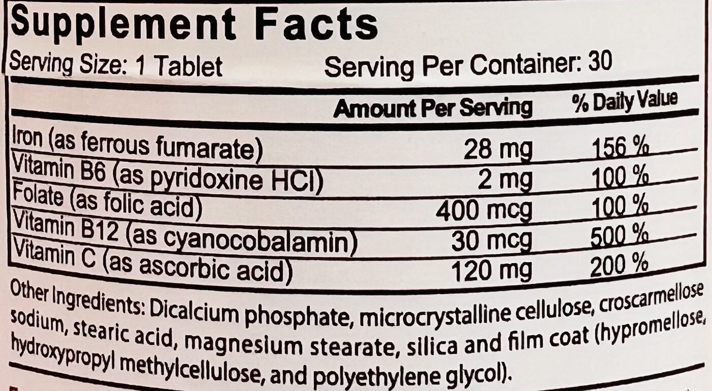 Iron ( as Ferrous Fumarate ): 28 mg