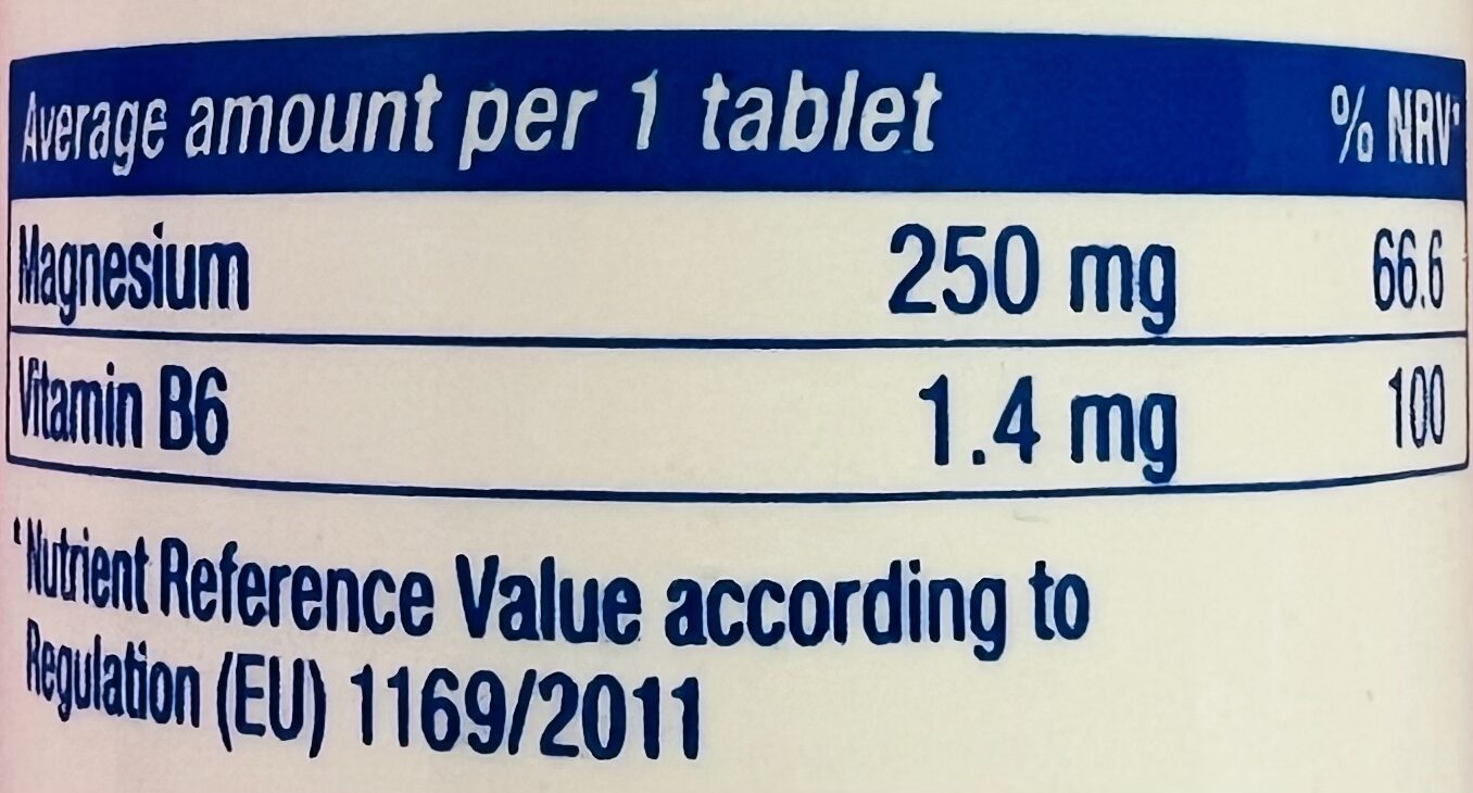 Magnesium: 250 mg