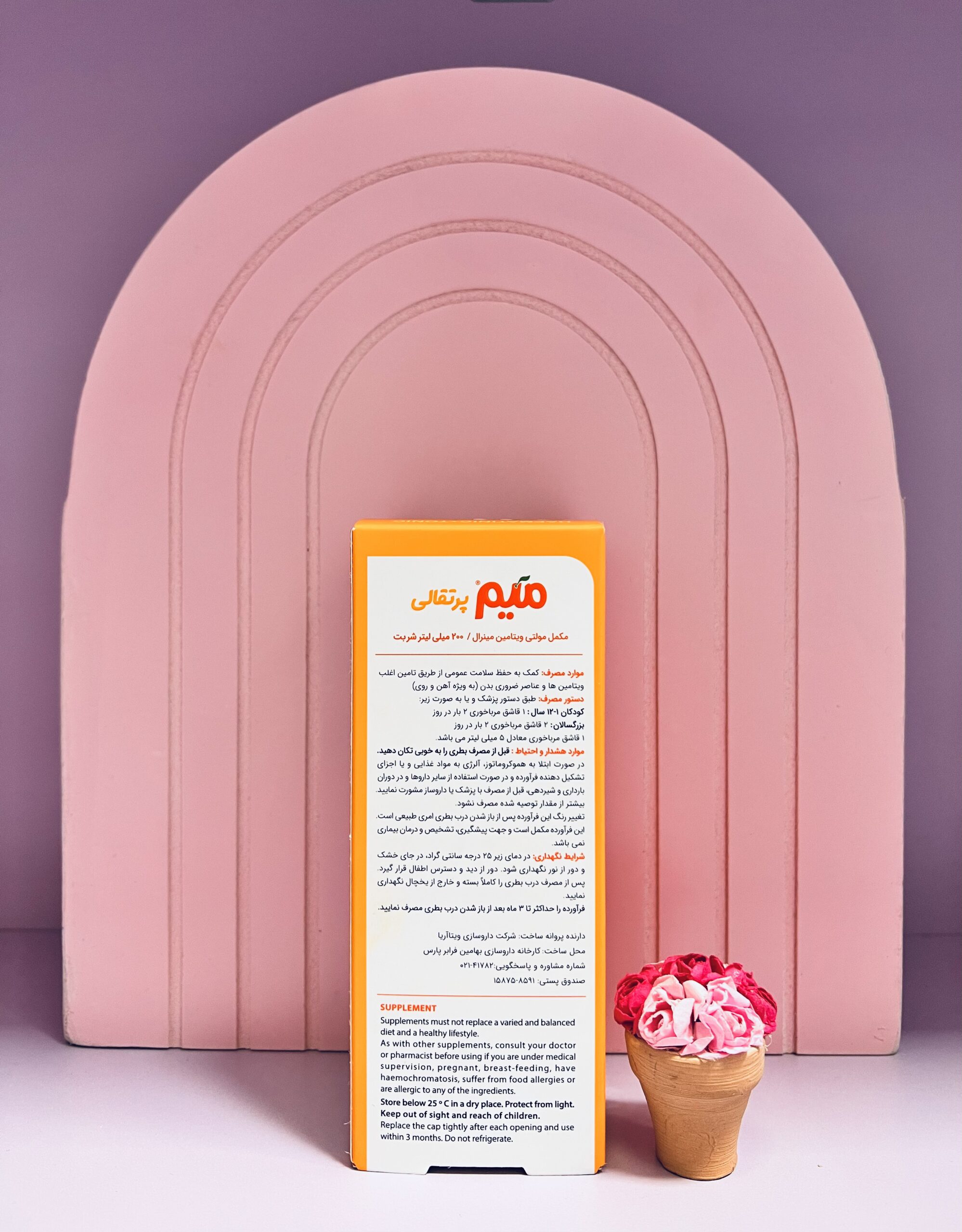 شربت میم، مولتی مینرال تامین کننده ویتامین ها و مواد معدنی به خصوص آهن و روی می باشد و به پیشگیری و درمان کم خونی و بهبود رشد در کودکان و نوجوانان کمک می کند.