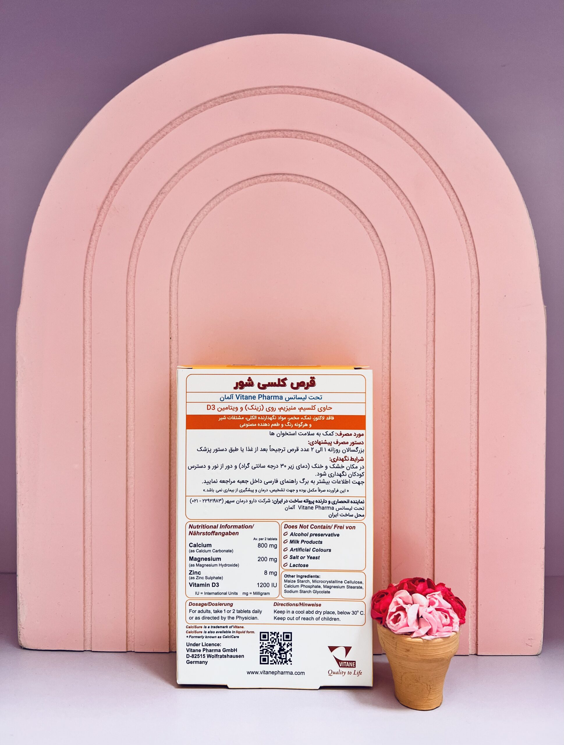 کلسی شور حاوی کلسیم، منیزیوم، زینک و د3 می باشد و به حفظ سلامت استخوان ها و پیشگیری از پوکی استخوان کمک می کند.