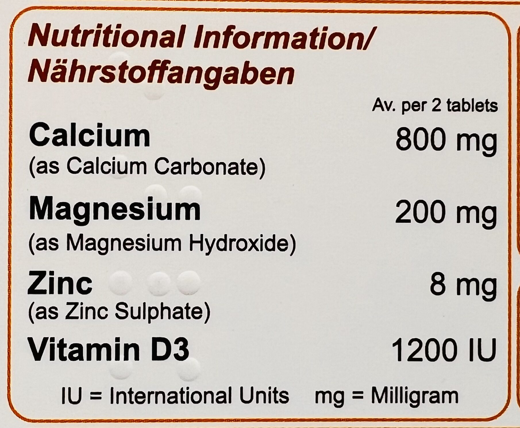 Vitamin D3 ( Cholecalciferol ): 1200 IU