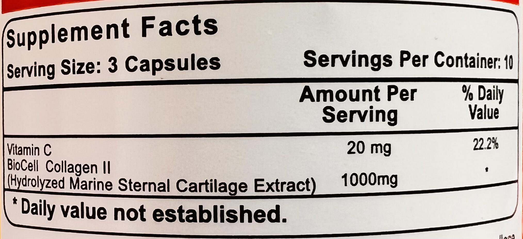 BioCell Collagen (Hydrolyzed Marine Cartillage Extract): 1000 mg