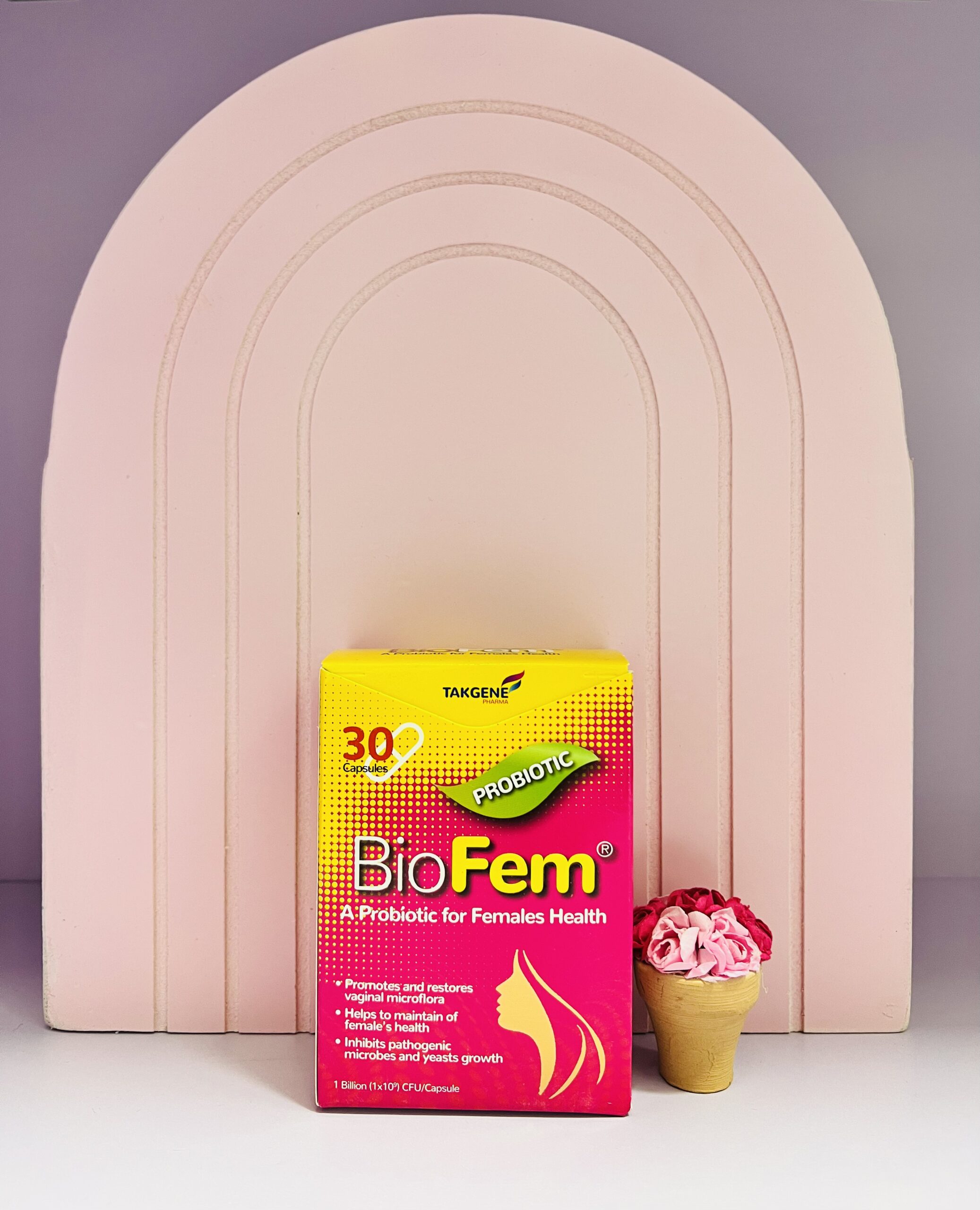 بایوفم پروبیوتیک حاوی لاکتوباسیلوس رامنوسوس و لاکتوباسیلوس روتری میباشد که به بازسازی میکروفلور نرمال واژن، پیشگیری و درمان عفونت های واژینال و همچنین سلامت عمومی بانوان کمک میکند.